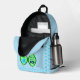 This awesome backpack features a graphic image of a green Pea pod containing 2 green peas and a big blue pea. The large blue pea has a cute little face with eyes and a mouth. On the other side of the pea pod in darker pink text it says "Baby Boy Ready to Pop".