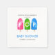 Colourful 'Ready to Pop' ice popsicle baby shower paper napkins with blue napkins. Customise with your own name and dates or choice of text. Popsicle artwork from artists own original illustrations. Please contact me if you need further help with customisation or special requests. (c) Zoe Chapman Design