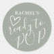 Ready To Pop Cute Heart Sage Green Baby Shower Classic Round Sticker