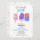 Cute popsicle baby shower invitation card with watercolor artwork of 3 elegant popsicle . "she's ready to pop! Perfect for a summer boy's shower