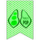 This awesome bunting features a graphic image of a green Pea pod containing 3 green peas. The largest pea has a cute little face with eyes and a mouth. On the other side of the pea pod in darker green text it says "Ready to Pop".