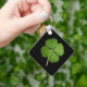 Real four leaf clover shamrock black key chain. Background colour can be customised.