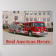 A Fire Truck Poster with the words real American Hero's for the wall of people who appreciate's the danger that our Hero Firefighter's go through to protect us everyday.