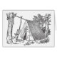 Vintage sketch of basic canvas tent held up by rope string between two trees