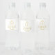 A beautiful gold key home design incorporating a white and gold logo. A beautiful white modern business open house water bottle label design. A simple and professional way to introduce your business. Social media handle included in the design of this open house bottle label. Personalise your details to create your own unique design.