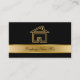 Upscale real estate business cards you can customise with simple but effective design that includes a gold coloured house symbol, gold printed line accents, and great text layout. Best business cards for themes related to real estate agents, housing, building, or construction.