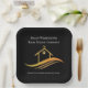 This chic real estate company paper plate is custom made with your realty company and agent name. This classy black and gold open house decor features a pretty house with a weathervane on top and sleek curves underneath. Personalise this business marketing design with your own information. Keep the design or replace with your own logo.