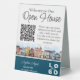 Designed with a rich blue background and crisp white text, this double-sided display ensures easy readability from any angle. The bold "Welcome to Our Open House" headline stands out, immediately capturing attention.