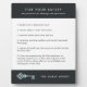 Reopening your real estate business in the covid-19 era? Keep your buyers and sellers safe with this beautifully designed plaque that's perfect for displaying at open houses and showings. Customise the wording to suit your needs and your area's guidance on public health and safety. Shown with basic guidance to maintain a safer environment during common real estate encounters, including wearing a mask and shoe covers, sanitising hands, minimising touching of sellers' belongings, and instructions to reschedule if feeling ill. Personalise with your business name along the bottom alongside a vintage skeleton key illustration in faux aqua foil.