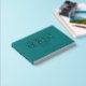 Real Foil Elegant Teal Green Calligraphy Script Wedding Guest Books features elegant modern silver calligraphy script typography with your names and wedding date below. Add your custom text on the spine of the guest book. Created by Evco Studio. www.zazzle.com/store/evcostudio
