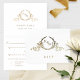 Elegant folded RSVP card with beautiful hand drawn wreath monogram with real Foil in front and back. Inside with monogram and text in golden hues (not foil). Option to add or erase meal choices, and add in its place an encouraging note for your guests (i.e. "hope you can make it, can't wait to see you there!"). Option to add name(s) and event on the back, or use this section for any other text/details like wedding website or such, or alternatively erase all text on back if you prefer it black. Part of our "Elegant Calligraphy Minimalist Wedding" collection with a variety of coordinating products available, including real foil matching wedding invitations. Visit entire collection at: https://www.zazzle.com/collections/elegant_calligraphy_minimalist_wedding_stationery-119497981924462546