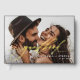 This modern wedding guest book features a stunning, full-cover photo design that beautifully captures the couple's joyful connection. The front cover showcases a photo of the couple, accented with bold, flowing real silver foil script that reads "guest book," adding a touch of elegance and contemporary flair. Complementing this, the couple’s names and wedding date are displayed in a clean, minimalist white font for a sleek contrast against the vibrant photo. The back cover continues the romantic theme with a second photo. The spine ties the design together with simple, vertical gold text featuring the couple's names and wedding date, ensuring the guest book remains a timeless keepsake even when displayed on a shelf. This chic, personalised design is perfect for modern weddings, blending sophisticated typography with genuine, heartfelt imagery.