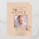 Celebrate your child's 1st birthday with this elegant floral design in neutral peach and orange tones. Easy to customise with the baby girl photo, name, age and your party details. Customisable for ANY AGE and a modern boho style.