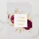 Luxurious elegant grey Card with golden Botanical Leaves and rich royal burgundy Roses.