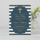 Real Foil Photo Gold Blue Stripes First Communion Foil Invitation