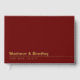 Real Foil Simple Modern Gold Script Wedding Guest Books features elegant modern gold script typography with your names and wedding date below on a burgundy red background. Add your custom text on the spine of the guest book. Created by Evco Studio www.zazzle.com/store/evcostudio