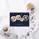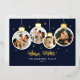Foil-pressed photo ornament Christmas cards with “Warm Wishes” greeting deliver a festive, upscale touch for your holiday greeting cards. Featuring four custom photos styled as hanging ornaments, this elegant card design is accented with real gold, silver, or rose gold foil detailing that enhances the sparkling stars and handwritten script. Set against a navy blue background, the metallic foil adds eye-catching brilliance and a premium feel. Each ornament is topped with a foil-embellished cap, creating a joyful and modern presentation that beautifully displays your favorite family moments. Perfect for stylish holiday cards, custom family greetings, or chic Christmas photo keepsakes.