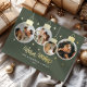 Foil-pressed photo ornament Christmas cards with “Warm Wishes” greeting deliver a festive, upscale touch for your holiday greeting cards. Featuring four custom photos styled as hanging ornaments, this elegant card design is accented with real gold, silver, or rose gold foil detailing that enhances the sparkling stars and handwritten script. Set against a sage green background, the metallic foil adds eye-catching brilliance and a premium feel. Each ornament is topped with a foil-embellished cap, creating a joyful and modern presentation that beautifully displays your favorite family moments. Perfect for stylish holiday cards, custom family greetings, or chic Christmas photo keepsakes.