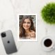 real gold foil Modern Class of 2023 script gold border photo invitation/announcement. It features a photo of the graduate and the text "Class of 2023 in real gold foil.