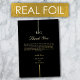 A beautiful real gold foil wedding thank you card with monogrammed initials framed by minimalist gold foil line. A stunning wedding black and gold thank you card design with minimalistic classy typography. Traditional script typography creates a timeless elegant gold foil wedding thank you card design.