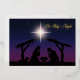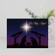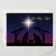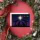 This beautiful Nativity scene Christmas card has a nightime view of the stable and manger with baby Jesus and Mary and Joseph overlooking the Lord Jesus with a bright shining star above. The words "O Holy Night" are done in real gold foil in the upper right-hand corner on the front side. The back has a SIMULATED gold look scroll frame with customisable navy blue wording that can be changed to say whatever you want it to.