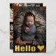 Introducing our elegant "hello" baby announcement postcard. A modern template that allows you to customise with 11 of your favourite photos of your new baby. On the front of this card there is space for one full image with real gold foil typography. On the reverse is space for 10 further photos. Customise with your own text and names to complete this elegant and sophisticated keepsake that your family and friends will treasure for years to come.