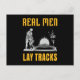 Real men lay tracks postcard