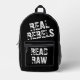 Real Rebels Read Raw Backpack — raw rebel statement in black & white for daring dudes AND cool gals devouring gritty books!