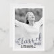 real gold silver Modern Class of 2023 script gold border photo invitation/announcement. It features a photo of the graduate and the text "Class of 2023 in real silver foil.