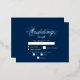 A beautiful real silver foil wedding RSVP response card with traditional script typography. A stunning navy blue and silver wedding RSVP response card design with minimalistic classy typography. Traditional script typography creates a timeless elegant silver foil wedding RSVP response card design.