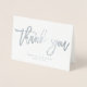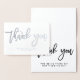 Real silver foil and black wedding Thank you cards (horizontal) with custom black text, printed on grey background, with grey envelope