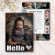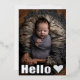 Introducing our elegant "hello" baby announcement postcard. A modern template that allows you to customise with 11 of your favourite photos of your new baby. On the front of this card there is space for one full image with real silver foil typography. On the reverse is space for 10 further photos. Customise with your own text and names to complete this elegant and sophisticated keepsake that your family and friends will treasure for years to come.