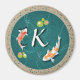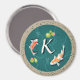 Realistic Green Japanese Koi Fish Pond name initial unique personalised design. This design has japanese koi fish in pond 3D realistic looking pond with lotus flowers. It is a customisable name monogram to add your initials. These asian exotic red and white fishes are believed to bring good luck. They are kept in an aquarium or waterfall indoors or ourdoors.
