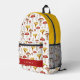 This cute backpack features a white background with mushroom & snail pattern in pink, red and yellow. Personalise it for your needs. You can find matching products at my store.