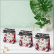 Original whimsical painting of Holiday Dollys by well-season Fine Art Artist, Gaye Elise Beda. A gathering of anthropomorphic mice is dressed in festive, holiday-themed clothing. Their bright red outfits and striped socks create a joyful and playful scene, with each mouse uniquely adorned. The background suggests a wintry setting, enhancing the festive mood.