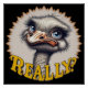 An ostrich with wide eyes and a perplexed expression is featured in a cartoon style, surrounded by a jagged border. The word "REALLY?" is displayed in bold, yellow text below the bird.