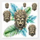 Realm of Foliage Tribal Mayan Mask Pattern Wallpaper