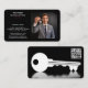 Unlock a world of opportunity with this professional business card template designed specifically for realtors! It features your photo on the front and a URL QR code to the homes you represent on the back. Also on the back is a sleep silhouette of a house key.