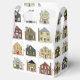 Real estate agency Christmas design decorated with colorful holiday houses, including a gingerbread house for any Realtor or real estate agent's client.