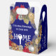 Stylish festive wreath favour boxes designed as part of a realtor-to-client closing gift during the Christmas season. ALL TEXT IS FULLY CUSTOMIZABLE so you can personalise the wording to suit your corporate branding. The text reads CHRISTMAS BLESSINGS ON YOUR NEW HOME. The design shows a white typography against a vibrant BLUE background. The O of HOME is replaced with a key. On the side, you can add your name and company name, or personal message to your client. You can change the background colour by clicking on Customise Further and choosing from the colour palette available. A wide range of matching gifts are available so you can create corporate gift sets for your clients at any time of year.