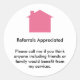 Modern referral appreciation sticker labels with image of a simple pink house symbol. Use these Realtor referral appreciation stickers on all your communication to clients or prospective home buyers to promote the idea of sending customer referrals your way. Your way of saying you're willing to work for business.
