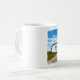 It has a large handle that’s easy to hold and comes in 11oz and 15oz sizes