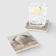The coasters are gorgeous, a quality feel and heavy weight. They look like a precious archeological find. A rustic stone juxtaposed with a modern floral black and white print. I like the way the print goes slightly imperfect on the cut stone edges giving them a kind-of natural beauty.