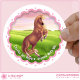 Add a special touch to a young girl’s birthday celebration with these personalized horse-theme stickers. Featuring an illustration of a golden palomino pony frolicking in a lush green pasture with customizable text. A trendy pink scalloped edge border and playful polka dots complete this design. Modify the text with your own sentiment to create a set of one-of-a-kind stickers to add a personal touch to gifts or favor bags.