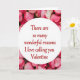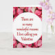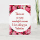 This greeting card features a white oval in the center with a loving message, surrounded by a thick border of rose petals. The petals range from deep pink to soft blush, and they overlap closely to create a full, cozy frame. In the middle, the text reads, “There are so many wonderful reasons I love calling you Valentine,” and it’s written in red script that feels personal and warm. The lettering sits neatly inside the oval and stands out clearly against the white background. Soft lighting gives the petals a gentle look and helps the whole design feel calm and romantic. Overall, it’s a sweet card that fits both romance and close friendship, with a simple, heartfelt focus. It’s an easy way to say what’s in your heart on Valentine’s Day ❤️💌