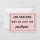 Reasons Why I Love You Mum Mother's Day Cute Note Card!