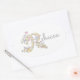 Pretty girls name sticker ideal for embellishing books and to personalised girls items. Stickers reads Rebecca or you can personalise with your own name starting in R. Graphic decorative R with hearts and flowers art © Designed by Sarah Trett www.sarahtrett.com for www.mylittleeden.com
