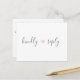 Designed to coordinate with our modern Rebecca wedding collection, this simple yet elegant wedding song request RSVP postcard features a sweet, little pink heart and handwritten, dark grey calligraphy set against a clean, white background. Easily customise your desired response date, accept and decline wording, and DJ request text. The colours can also be changed to match your theme. Be sure to browse the other products in this collection to create a coordinated, stylish look for your special day. If you need assistance customising your items, please contact me at admin@albamarie.com. I'd happy to help!