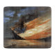 Flames of the Union colours unleash hell on this rebel flagship in 1861 during the Civil War. Vintage artwork was make by William Bauly and in public domain.