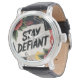 Rebellious Design: "Stay Defiant" Punk Slogan Watch